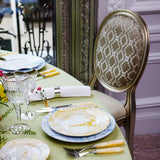 The Aghata Platinum Water Glass by Cristallerie de Montbronn showcases the maison’s mastery of crystal artistry. Featuring long, thin bevel cuts, this elegant design enhances light reflection, creating a dazzling play of brilliance. The glass is further adorned with a hand-painted platinum rim and intricate hieroglyph-inspired motifs, giving it a distinctive postmodern character.