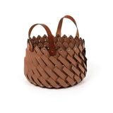 Almeria Small Round Basket With Handles Regenerated Leather in Camel by Pinetti