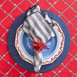 A vivid cluster of hand-arranged coral-like branches bursts from a clear ring, evoking the raw elegance of undersea world. With its fiery red and deep oxblood tones, this striking piece will take your coastal tablescape to the next level.