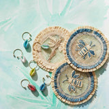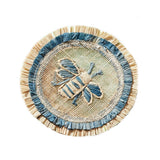 Celebrate summer charm with this Bee Straw Drink Coasters with Blue Stripe by Joanna Buchanan. Each coaster is handcrafted from natural straw and detailed with a playful blue stripe and embroidered golden bee, blending rustic texture with a whimsical touch.