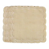 These embroidered napkins have an irregular shape similar to flower petals, which adds purity and loveliness to the table arrangement. The warm color gives them a touch of simplicity and refinement. Their borders are embroidered with shiny gold ecru viscose thread, adding a special detail to their design.