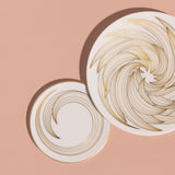 Bread and butter plate measuring 16 cm, crafted from fine porcelain and finished with flowing gold feather motifs that introduce light and movement across the surface. Part of the Phenix collection, the compact format is suited for bread service, small accompaniments, or delicate courses. The luminous gold detailing and balanced proportions contribute to a cohesive and refined table presentation.