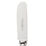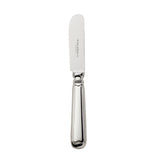 This silver-plated butter spreader offers a smooth blade and a balanced ergonomic handle. Part of the Alt-Faden collection, known for its repeated thread detailing ending in a scalloped finish. The thread pattern of this design produced by Robbe & Berking originated around 1760, when Augsburg silversmiths introduced the single or double silver thread edging.