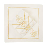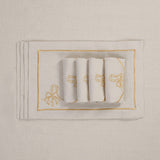 Refined and festive, these napkins are made from light beige Italian fabric. Each piece is embroidered with a golden candy cane motif, subtle yet celebratory, adding a gleam of seasonal charm without overwhelming the table. A graceful choice for holiday entertaining, they set the tone for a warm, sophisticated gathering.