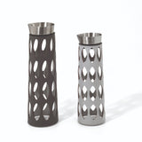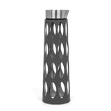 Cylindrical Glass Carafe with diamond-shaped cut removable leather cover and stainless steel mat cap.