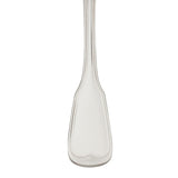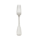 This silver-plated children's fork features fine, precise tines and a balanced handle for comfortable use. Part of the Alt-Faden collection, known for its repeated thread detailing ending in a scalloped finish. The thread pattern of this design, produced by Robbe & Berking, originated around 1760, when Augsburg silversmiths introduced the single or double silver thread edging.