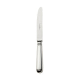 This silver-plated children's knife features a balanced ergonomic handle. Part of the Alt-Faden collection, known for its repeated thread detailing ending in a scalloped finish. The thread pattern of this design, produced by Robbe & Berking, originated around 1760, when Augsburg silversmiths introduced the single or double silver thread edging.