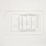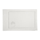 Silver cotton fabric serves as the base for embroidered bauble motifs stitched in matching viscose thread. A clean border frames the design with subtle detail. Presented as a set of six, these placemats bring a festive elegant accent to your tablescape.