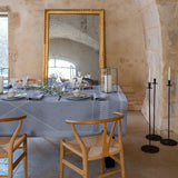 The Club tablecloth in blue cotton by Le Jacquard Français blends relaxed luxury with everyday functionality. Woven in France from 100% combed cotton, it features a tone-on-tone geometric jacquard, adding subtle structure to its soft, vibrant hue. The fresh blue shade evokes seaside charm and is perfect for yachts, coastal villas, summer terraces, or light-filled dining rooms.