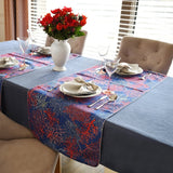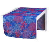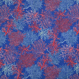 This coastal table runner is crafted from premium Italian cotton, showcasing a delicate blue and red seaweed pattern. It features a matching blue piping border and rounded corners for a sophisticated touch. Lightweight and easy to style, this runner brings a fresh touch to your space.