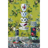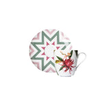 The Paraiso Porcelain Coffee Mug & Saucer by Sieger by Fürstenberg brings colorful artistry and modern elegance to refined coffee moments. Part of the Paraiso collection, the mug is decorated with bold tropical floral motifs in vivid shades of red and green, while the saucer features a striking geometric star pattern in pink and green.
