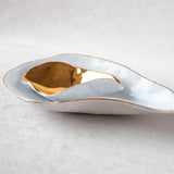 >Please note that the golden finish is sensitive and should be treated with the utmost care. If using with cutlery is recommended using only wooden/horn/mother of pearl utensils to avoid scratching. Please hand wash and avoid scrubbing sponges.