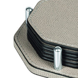 The David Octagonal Coaster Holder with 6 Tao Octagonal Coasters by Giobagnara blends sculptural form with Italian craftsmanship. The holder, part of the structured David collection, is paired with six Tao octagonal coasters, each handcrafted from premium, water-repellent leather in complementary tones.