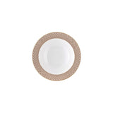 The Francis Carreau Beige Porcelain Deep Plate with Rim by Rosenthal is a refined 16.3 cm plate, perfect for smaller servings such as desserts, breakfast, or fresh fruits. Part of the Francis Carreau collection, it features soft beige geometric check patterns accented with fine gold contours, balanced by crisp white porcelain surfaces that bring airiness and elegance.