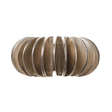 A refined interpretation of the waxing and waning moon, the crescent-shaped Demilune napkin ring is formed by hand-folding metal discs. Each folded disc, finished in silver, is hand-arranged on the metal base.