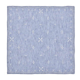 Inspired by the distinctive designs of Moroccan embroidery, the blue Fez napkin features white embroidered motifs. The 100% linen napkin is finished with a white stiched border that forms a beautiful frame.