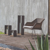 The Manutti Flame outdoor lights, designed by Koen Van Extergem, are outdoor rechargeable electric lights that will last for up to 20 hours on a single full charge. There are no wires to think about as the units are stand alone. With a remote control to set the strength from cold white to warm white they can create the ambiance for any occasion. There are 3 sizes small, medium and large.
