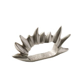 This matte silver napkin ring features sharp, fluid folds in a flame-inspired shape. Its bold, sculptural form brings a dramatic edge to the table, perfect for contemporary settings.