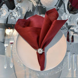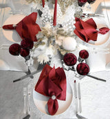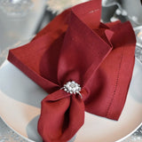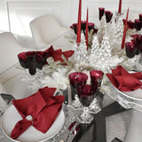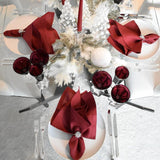 A linen napkin in rich red, designed without ornate details or embellishments. Its clean, minimalist style suits modern and contemporary table settings perfectly. The fabric is treated with advanced Teflon stain release for easy care and lasting beauty.