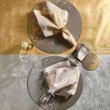 Inspired by the shimmering lights of New York City, these napkin rings add a touch of elegance to any table setting. Featuring a double row of metallic roping and a stylish top knot, these napkin rings are perfect for a sophisticated festive tabescape.