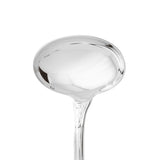 Silver-plated gravy ladle designed for pouring sauces and gravies with control. The deep bowl holds a generous amount of liquid. Its contoured handle features laurel detailing and sits comfortably in hand, ensuring steady service at the table.