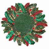 Welcome the festive spirit with the Holly & Sprig Placemat, a perfect addition to your Christmas table. Over 25 different types of beads and sequins recreate traditional boughs of holly and holiday greenery in exquisite detail, framing the dinner plate with enchanting flair. This placemat combines traditional holiday decoration with glamor, making it a showstopper for winter celebrations.