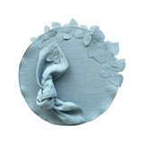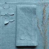 This linen napkin features mitred corners and a tone-on-tone hydrangea appliqué. The floral detail feels soft and intentional, adding texture. A minimalist, delicate design for spring or summer tablesettings.