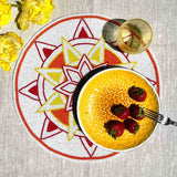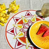 Vibrant and lively, these colorful hand-beaded placemats will transport you to the hidden coves of Spain. The warm radiant hues paired with its patterns inspire a sense of exotic lightheartedness. These dynamic, festive, and chic placemats will instantly brighten up a table.