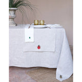 Each napkin is delicately embroidered with one of four iconic insects, each bearing its profound meaning and positive message. From the bee symbol of abundance, the ever-present lucky charms of beetle and ladybug to the dragonfly, a wish for freedom. A collection that, once again, wants to be a vehicle of positive messages, good wishes, and, of course, nature.