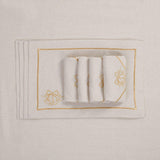 These placemats bring a festive touch to your dining table. Each placemat in this set of six is crafted with luxurious Italian fabric lurex, embroidered with lustrous gold viscose thread featuring a stylish border and Christmas bell motif. Add an elegant and sophisticated ambiance to your holiday gatherings.