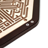 The Jinn Octagonal Labyrinth in Brown Grained Leather by Pinetti transforms a traditional dexterity puzzle into a captivating work of design and craftsmanship. Meticulously handcrafted, this intricate labyrinth features a veneered beech fibre panel, expertly encased in grained calfskin leather. Each path and turn is carved with precision, creating a geometric maze that invites both focus and play.
