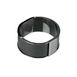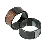 This napkin ring features a brass structure wrapped in fine leather, finished in palladium with a PVD coating. The surface is smooth, durable, and hypoallergenic. Its precise shape and balanced proportions make it a modern addition to the table.