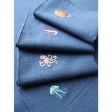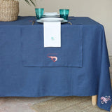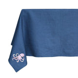 'Marina' Tablecloth Blue Embroidered Sea Life in Linen by Giardino Segreto
