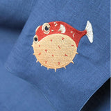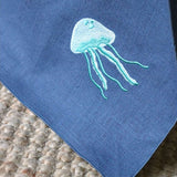 The Marina blue linen tablecloth by Giardino Segreto captures the essence of the ocean with a sophisticated twist. Crafted in Italy from 100% linen, this sea-themed tablecloth is embroidered with four different marine animals, octopus, blowfish, jellyfish, and shrimp, each delicately stitched on one corner for a touch of playful elegance.