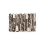 The silver Matrix napkin ring is an exquisite table accessory exuding sophistication. Its brass cuff, embellished with meticulously hand-attached mother-of-pearl elements, creates a captivating high-low effect with its textured border.