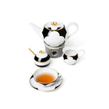 The MY CHINA! Ca’ D’Oro Milk Jug / Creamer by SIEGER for FÜRSTENBERG is a luxurious addition to refined tea and coffee settings. Handcrafted in fine porcelain, it features a spherical body decorated with bold white quatrefoil motifs on a deep black background, accented by a gleaming gold rim and base. Its curved spout and handle ensure effortless pouring, combining practicality with timeless design.