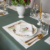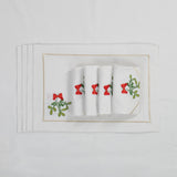 These placemats are made from Italian white cotton half panama. Each piece is embroidered with a mistletoe motif in viscose thread. A stitched border completes the design with fine detail. Supplied as a set of six, they bring a festive accent to the Christmas table while keeping a simple and refined character.
