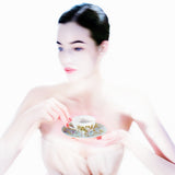 The 'Paradis' porcelain service is the result of a collaboration between the French porcelain manufacturer Raynaud and Fromental, a British interior design company. The British company conjures up 'Haute Couture' fashion for walls, producing luxurious wallpaper. Skilled artists need an inordinate number of hours to produce this intricately embroidered range of wallpaper. The Limoges porcelain service 'Paradis' by Raynaud takes its inspiration from the so-called 'Chinoiserie' paper wallpapers of the British label.
