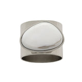 This elegant napkin ring features a natural mother of pearl shell with a silver-toned brass edge, creating a sophisticated, timeless accent for any table setting. Its subtle shimmer and organic shape make it a perfect match for a wide range of napkins and placemats—especially pastel tones in spring. Each piece is unique due to the natural variations in the shell, making every table setting one of a kind.