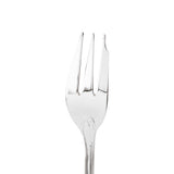 Silver-plated pastry fork designed for clean, precise serving of pastries and desserts. The shorter tine on one side provides extra leverage when breaking through crusts or layered textures. The handle features laurel motifs and has a balanced weight for a steady, comfortable grip.