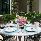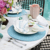 The Perennial placemat features delicate, translucent periwinkle blue beads arranged in a vermicelli pattern, exuding understated sophistication. Its timeless design allows you to effortlessly restyle it season after season.