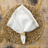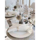 A glamorous mix of champagne and gold, these napkin rings are embellished with rhinestones to add sparkle to any table setting. Pair with a simple napkin for a refined, chic look.