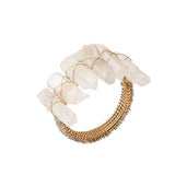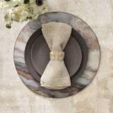 The Radiant Napkin Ring features staggered rock crystals arranged in an organic, freeform pattern that captures the raw beauty of natural materials. Finished with a subtle iridescent sheen, the design glows with soft shimmer, making it a versatile accent for both casual and formal table settings.