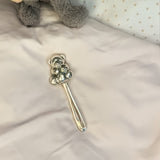 The Rattle Teddy with Handle Sterling Silver by Sonja Quandt captures the essence of luxury childhood keepsakes. Expertly handcrafted in sterling silver, this delightful rattle features an intricately detailed teddy bear design and a smooth handle for easy grip.