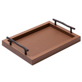 Rectangular Leather Tray "Chaumont", by Pigment France by Giobagnara, combines the finest golf-nappa leather, woven leather in Vienna Pattern and wood structure by using the high-quality calf leather from northern Europe. It is tanned with a special treatment that makes it waterproof and scratch-resistant.