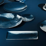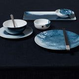 The Abysses Rectangular Tray by Raynaud is a refined serving piece that brings the poetry of the ocean depths to the dining table. Designed by Aurore de la Morinerie, this tray reflects her artistic interpretation of marine landscapes, where indigo blues merge seamlessly with the pure white of Limoges porcelain.