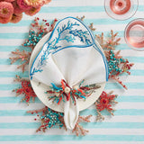These exquisite napkins have an intricately embroidered edge that mimics the gentle undulating movement of ocean waves. The delicate coral reef design, intricate detailing, and vibrant colors add a touch of natural beauty to your table setting, creating an enchanting coastal ambiance.