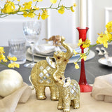 Resin Decorative Elephant Statue in Gold with Mirrors | Small