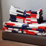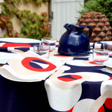 Meticulously crafted from premium-quality fabric, these napkins showcase a captivating ecru color that provides an ideal backdrop for the whimsical bubble motifs. This entanglement of red, blue, and ivory bubbles results in a lively and dynamic visual display, giving them extra charm.