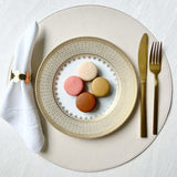 These reversible placemats combine soft blush pink with a neutral cream tone, offering two looks in one design. Made from faux leather, they are durable, easy to wipe clean, and practical for both casual dining and special occasions. Switch sides to create either a playful or more refined setting.
